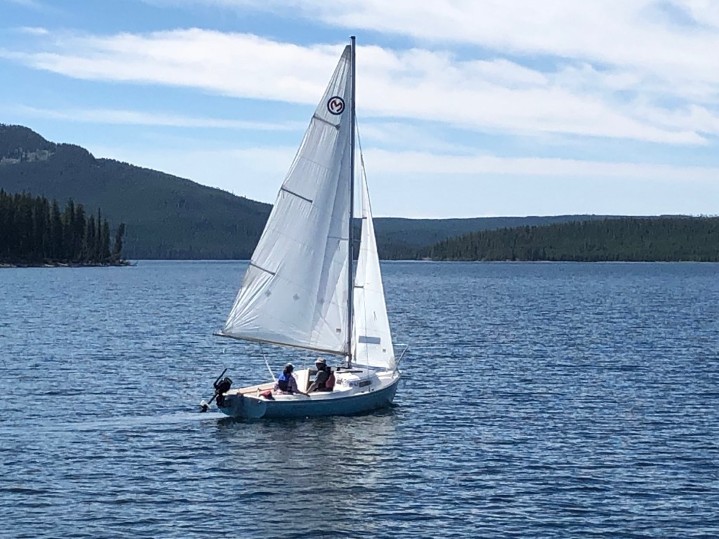 We thank Bob for his help, and JD motors Vishnu to our slip. We install the mainsail and jib, and are relieved to find that we aren’t missing any parts, which is a significant feat – and testament to JD’s disciplined preparation and packing. After some effort, we successfully re-rig our single-line reefing system for the mainsail, which we installed last year after a harrowing event in a strong gust on Canyon Ferry reservoir. Sails in place, we head out on the water again, tacking back and forth in consistent, light winds. As we sail, I remember fondly my cousin Brad Ansley, the boatbuilder and sailor from Tennessee who pointed JD and me towards this 19-foot sailboat, and provided countless advice as we (mostly JD) painstakingly restored her after years of lying abandoned in Albert Lea, Minnesota. Days before JD and I left to come sailing on this trip, I had attended (virtually) a celebration of life for Brad’s older brother Donald, an accomplished designer and builder of yachts and sailboats. Brad and Donald share an infectious love of boats, sailing, wood working, and the many wonders and mysteries of life. As Vishnu heeled over in the wind, I closed my eyes, feeling the wind and sun on my face, and thought of them both. What a gift they have given me, their knowledge and passion making it possible for JD and me to be here, now, on the waters of the largest natural lake west of the Mississippi, on a crisp, clear, mountain day – savoring the simple, finer things in life. Donald’s sudden, untimely death, and the grief so poignantly shared by those closest to him, served as yet another reminder: live like tomorrow never comes.