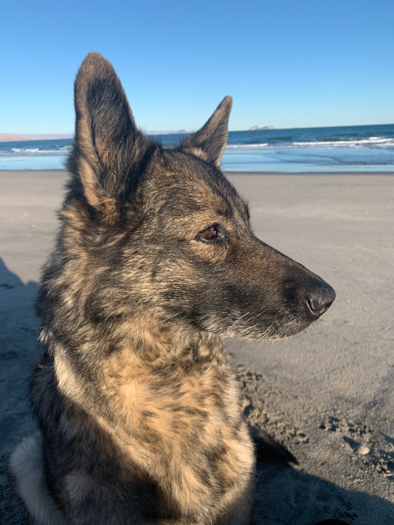 We arrived at Vicki and Larry’s house to find a beautiful, stately Shephard named Loba laid on her side, nursing her puppies. I remember them being tiny, barely having their eyes open. I don’t recall us picking them up, but I do remember the tug of their adorable, miniature, furry faces and bodies. However, JD and I were steadfast – we weren’t ready for a puppy. As we began to leave, Vicki reminded us about the other dog she was tending to – a small, thin, female German Shephard whom Larry had found backed into a corner just outside his garage in the middle of the night, where she stood barking, preparing to fend off an attack from howling coyotes who were closing in on her. She was less social than Loba, tending to hang out under nearby parked trucks for shade, rarely coming around but for the food and water that Vicki and Larry were leaving for her just inside their garage. There’s something special about her, Vicki said. Maybe you should just meet her? They’d asked around, no one on the beach – gringo or Mexican – would claim her. She was alone.