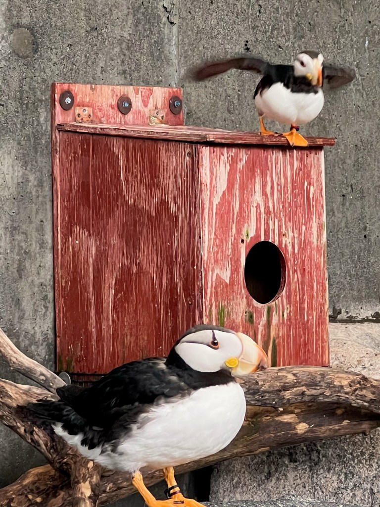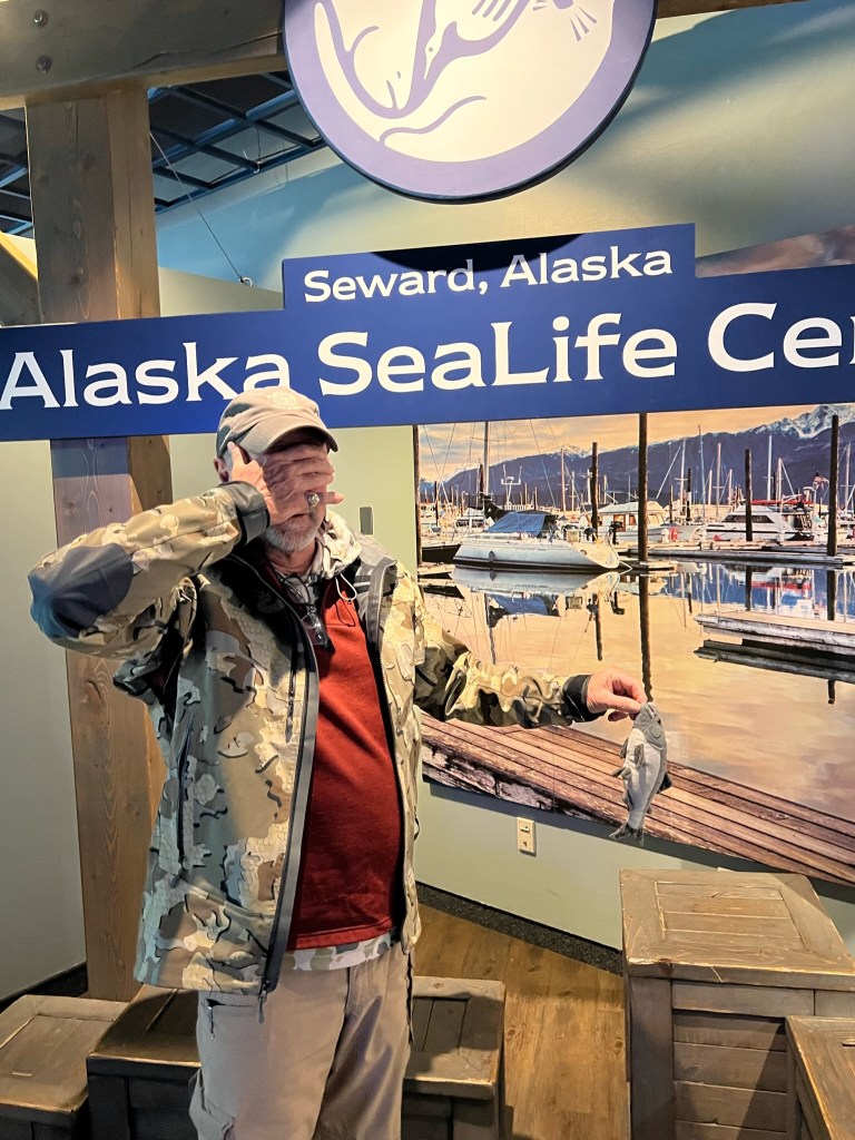 While still in Seward, we visited the Alaska Sea Life Center – the only facility in Alaska that combines a public aquarium with marine research, and wildlife response. One of a network of aquariums dedicated to education and outreach on behalf of North America’s marine ecosystems. Aquarium tanks filled with various species of saltwater fish, sea urchins, and sea cucumbers…. an outdoor aviary with tufted and horned puffins, rhinoceros auklets, long-tailed ducks, common Mures, and glaucous seagulls – where the puffins and mures perched and preened on rocks within 10 inches of our faces! Before visiting, we learned that the Center was caring for a baby walrus, originally reported abandoned by some oil workers out at sea, who spotted the month-old walrus near their rig and called it in. At the Center, we briefly observed staff providing care to the walrus, and learned that the baby was between 100-150 lbs, about half the weight expected for its age. Sadly, the day after our visit the Center notified the public that the baby walrus had died – succumbing to the myriad conditions that may have led it to be abandoned by its mother at sea. Although sad, the rescue and rehabilitation effort reminded me of the dedication of those that I worked with throughout the course of my career at the US Fish and Wildlife Service – and illustrates the concern and dedication that we humans are capable of, when we care about something beyond ourselves.