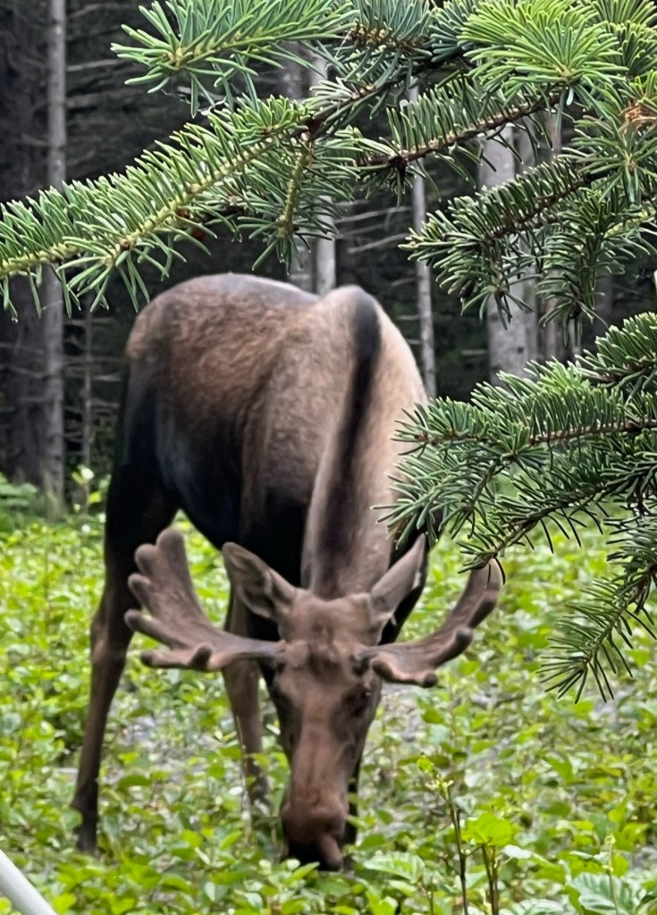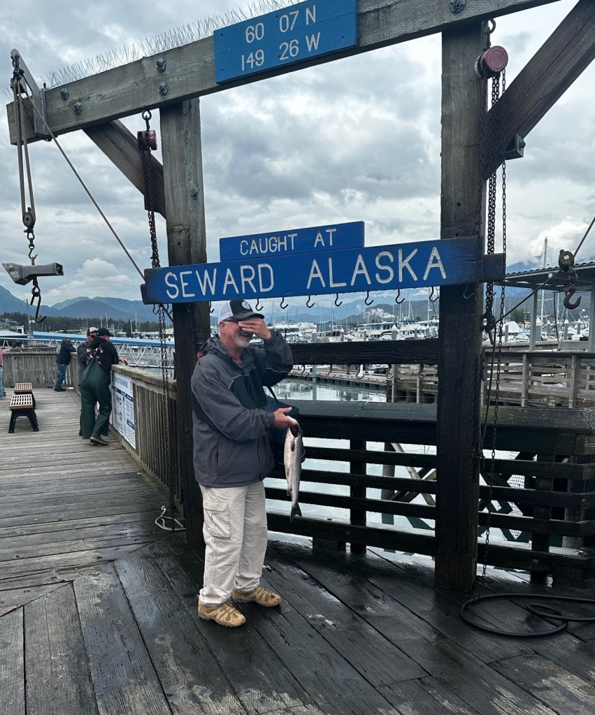 We bypassed Anchorage and headed for Seward, where we parked our campers at Windsong Lodge courtesy of our friend Fernando, a senior executive for Pursuit’s Alaska Operations. With Windsong as our base camp, JD and I headed over to Seward’s Boat Harbor, where we scored a boat slip for the week. When we returned to camp, Lee and Kathy had already scared up a moose (or perhaps we should say it was the other way ‘round) while disconnecting their trailer in the Windsong Lodge parking lot!
