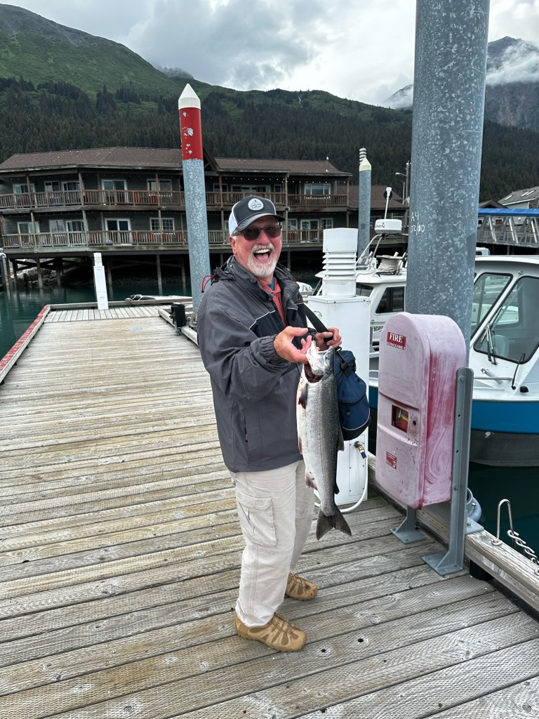 Lee and JD ventured back out on the boat again the next day… this time returning with one, precious sockeye salmon…. And lots of laughs.