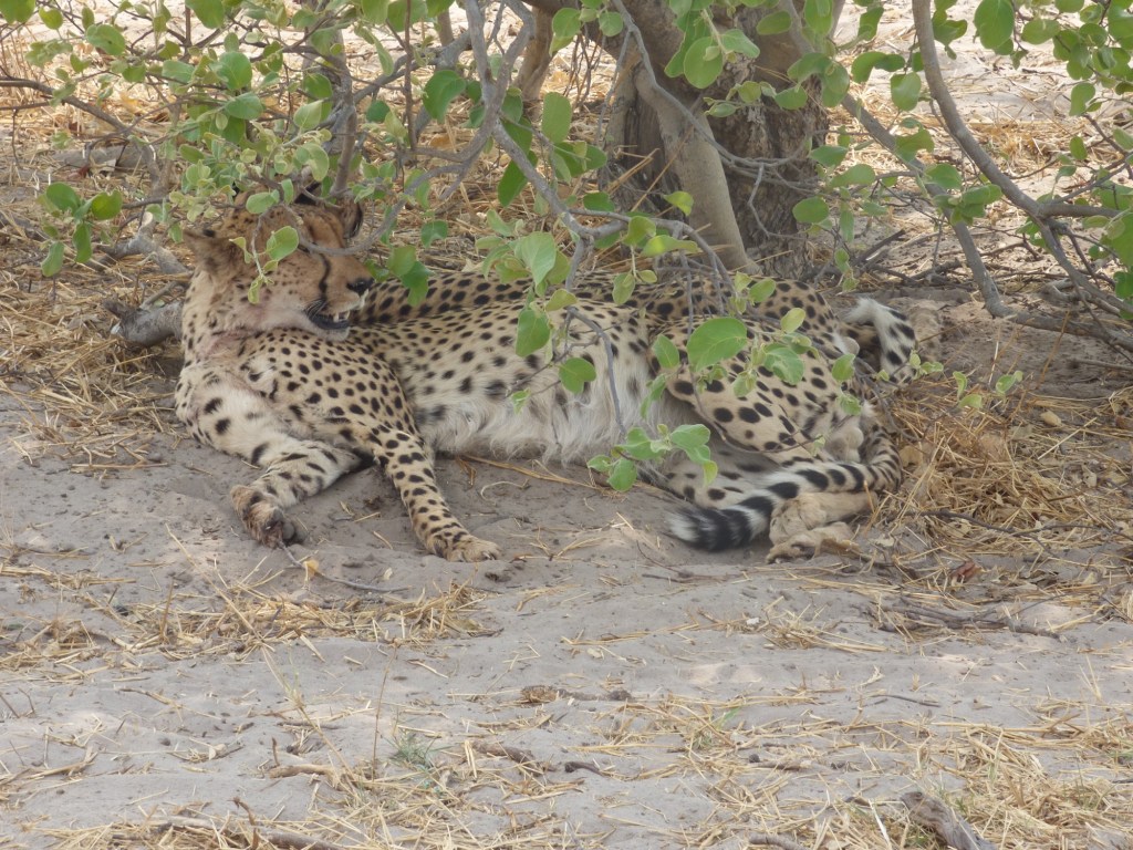 After several hours into our initial drive to camp, our guides learned of a cheetah sighting. With focussed determination, they brought us to two cheetahs resting in the shade of a bush, after feeding that morning on a kill. This was doubly important because it provided an opportunity for JD and me to satisfy a request from our 5-year old granddaughter, Levi, who wanted to know if the African cheetahs knew her stuffed cheetah, Lloydie.