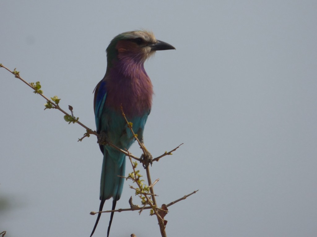 Hours later as our vehicles began to approach the waters of the Delta, we began spotting hippos, as well as many species of birds, including my new favorite of the trip, a lilac breasted roller. In flight, the bird when viewed from above is a stark contrast of black body and brilliant turquoise, with a dramatic, lengthy tail. When perched, the lilac-red breast fades to purple and turquoise. We saw dozens of this and other types of rollers during our time in the Delta – they are named for the noisy maneuvers they make in flight, when feeding or defending territory.